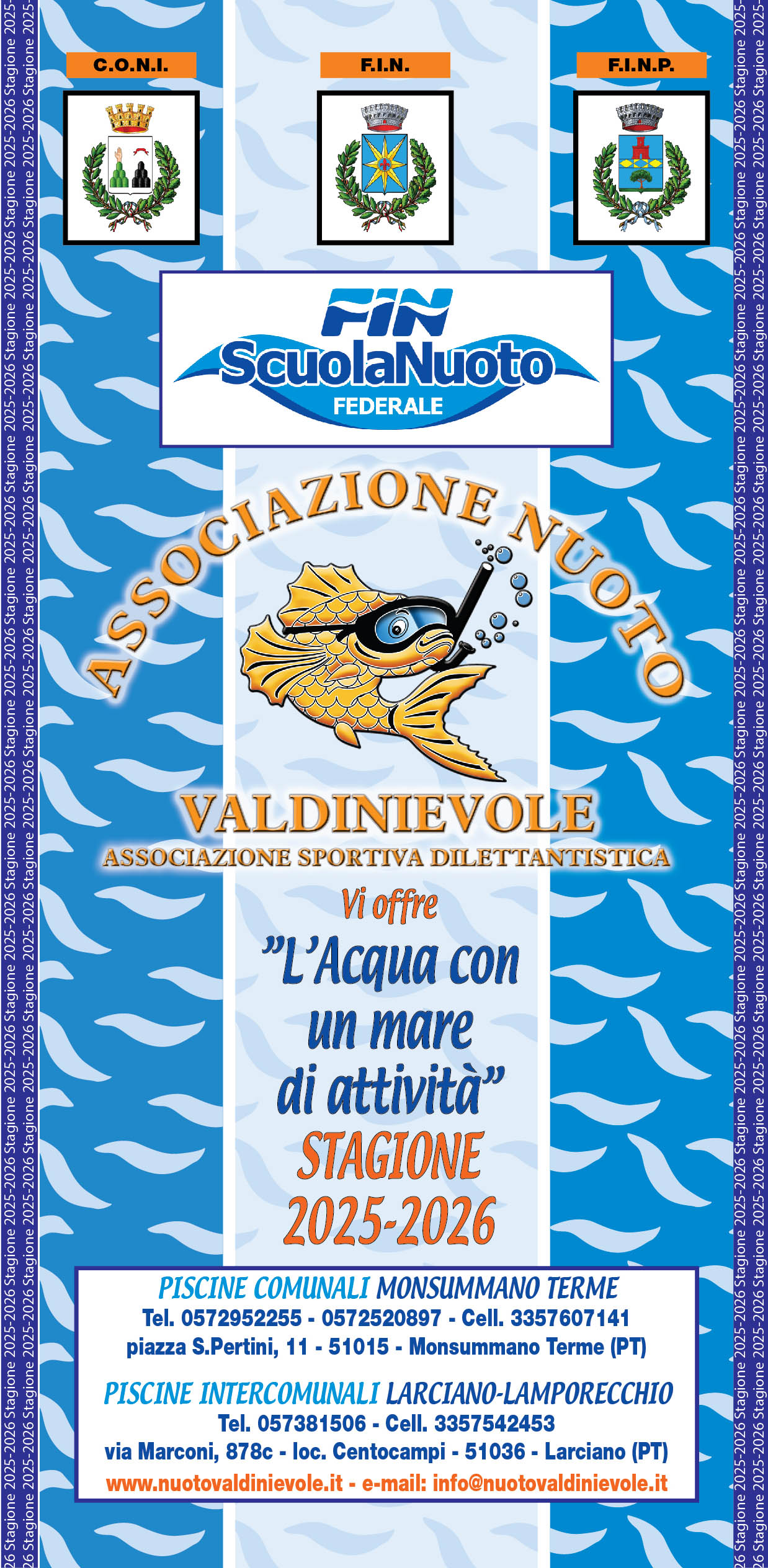 La Società si fa carico di una molteplicità di servizi che vanno dalla proposta di corsi nuoto della Scuola Nuoto Federale per utenti comprendenti neonati, bambini, ragazzi, adulti ed anziani a quella di corsi di Fitness in acqua; ginnastica dolce per anziani; idrochinesi; corsi per il conseguimento del Brevetto di Assistenti Bagnanti. Pur dando notevole spazio alle attività che soddisfano direttamente le necessità, senza preclusioni di età, degli abitanti della Valdinievole e dei Comuni limitrofi che vogliono acquisire una cultura dell’acqua e del benessere che ne scaturisce dall’imparare e praticare attività acquatiche e motorie per uno stile qualitativamente migliore di vita, non viene trascurato “anzi ne è il motore portante” il settore Agonistico, nel convincimento che lo Sport deve essere un’esperienza “per la vita”.