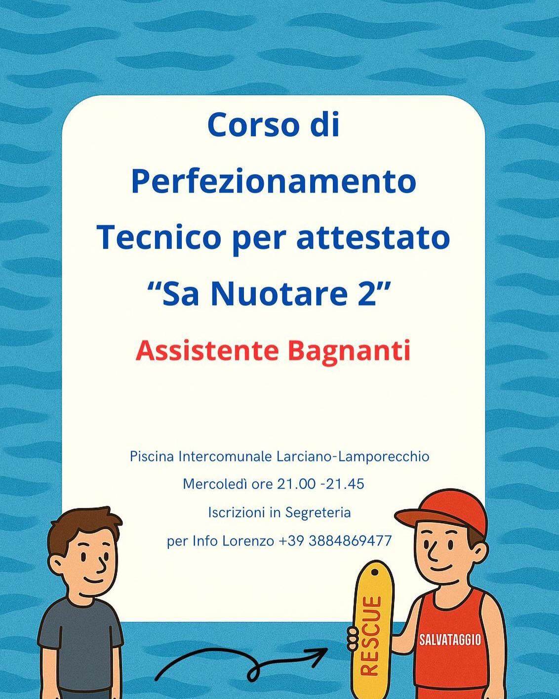 Dal 22 ottobre 2025. il mercoledì puoi venire nelle nostre piscine di Larciano-Lamporecchio, per partecipare al corso per imparare in maniera ottimale le tecniche di nuoto e con il tempo sviluppare le tecniche di salvataggio per ottenere il brevetto ufficiale come Assistente Bagnanti